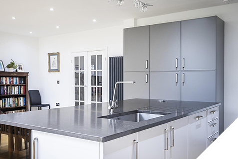 We worked alongside the client to source all finishes from our trade suppliers, including the flooring, kitchen and paving.